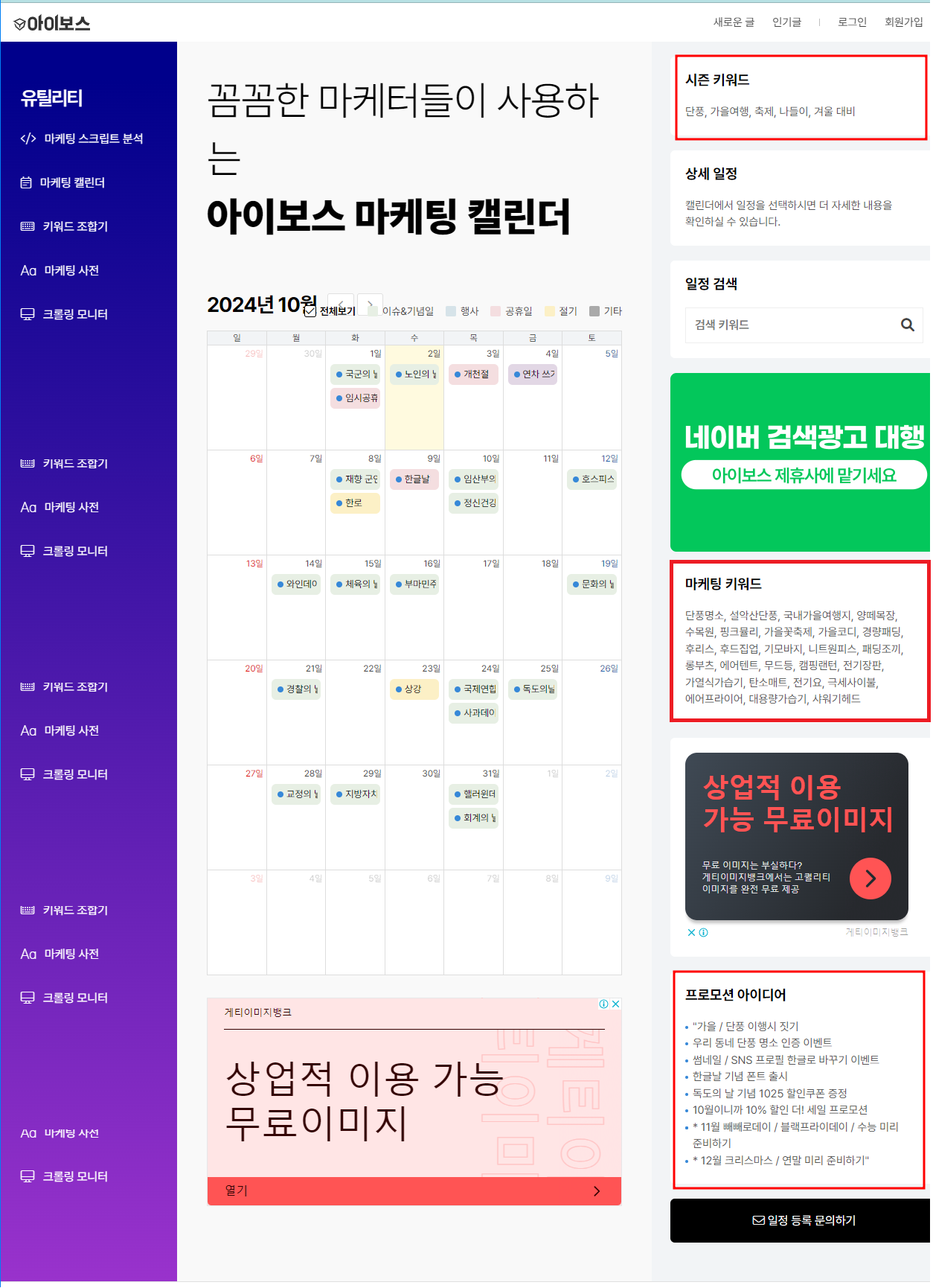 시즌별 키워드, 마케팅 키워드, 프로모션 아이디어 정보를 제공합니다.