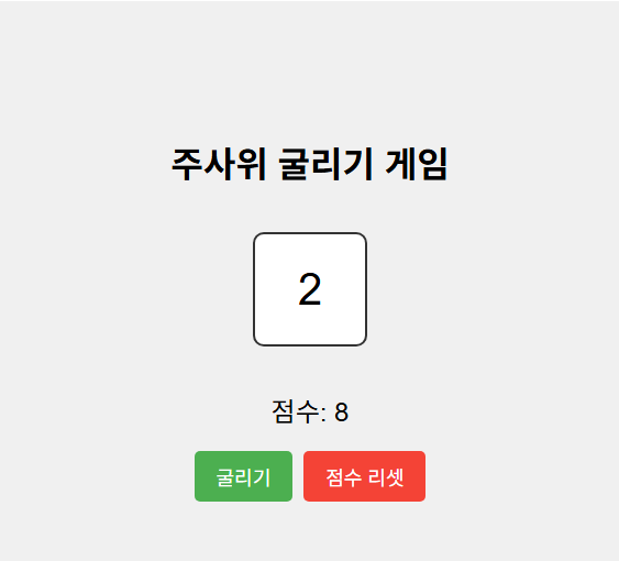 주사위 굴리기 게임 1 점수: 0 굴리기 점수 리셋